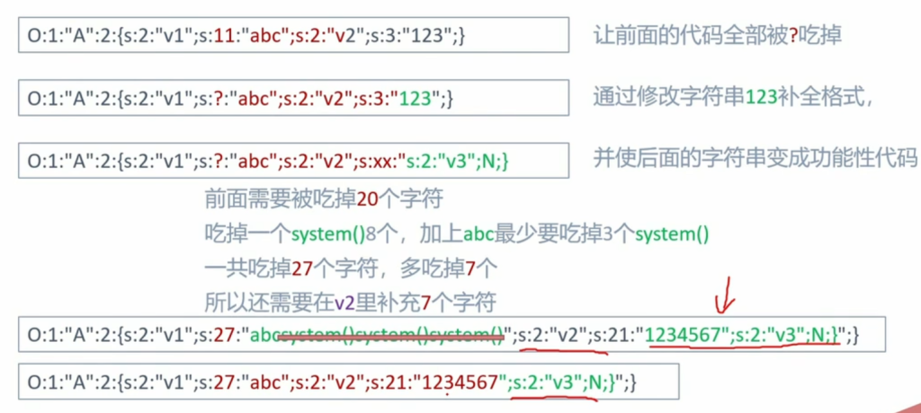 echo $data;//O:1:"A":2:{s:2:"v1";s:11:"abcsystem()";s:2:"v2";s:3:"123";}