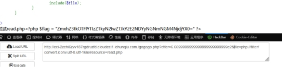 看到可以配合convert.iconv修改字符集(这个是现查到的),使用file=php://filter/convert.iconv.utf-8.utf-16le/resource=read.php