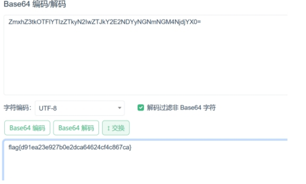 然后利用在线工具base64解密,成功得到了flag