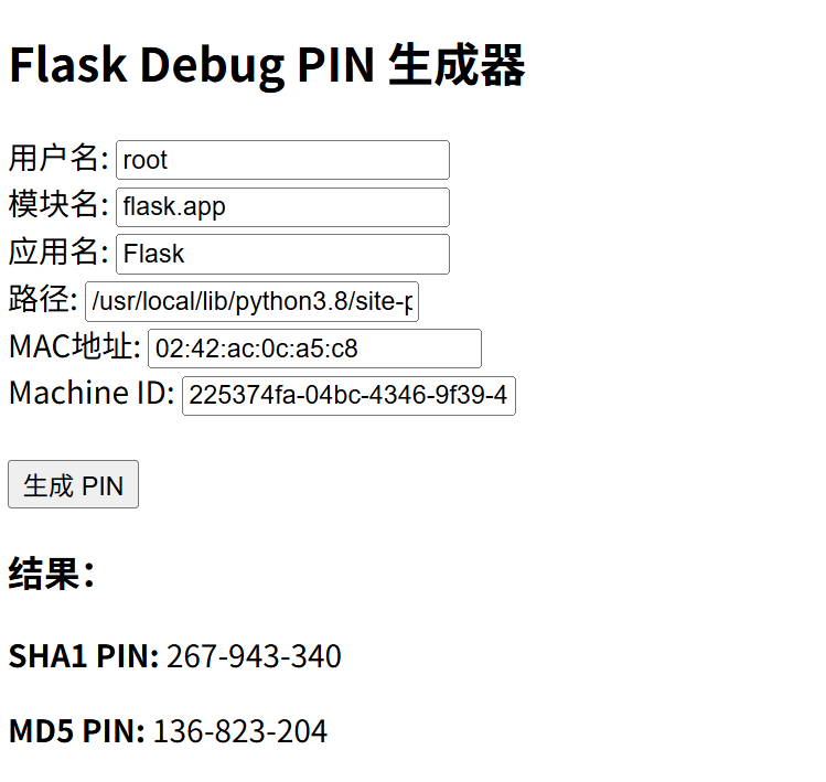 PIN码是用于flask开启调试模式下的安全机制,开启debug后,flask会在web浏览器增加交互式调试控制台,也就是相当于自带webshell,但是会要求未授权用户在输入PIN码后才可以使用控制台