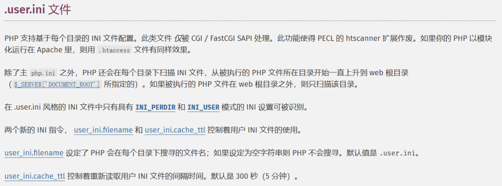 .user.ini 是 PHP 为 非 CGI 模式(主要是 FastCGI) 提供的一种目录级配置文件机制,用于设置当前目录及其子目录的 PHP 配置项