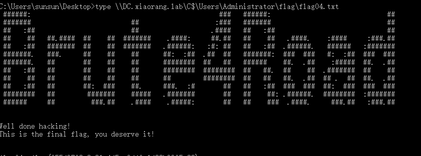 C:\Users\sunsun\Desktop>type \\DC.xiaorang.lab\C$\Users\Administrator\flag\flag04.txt