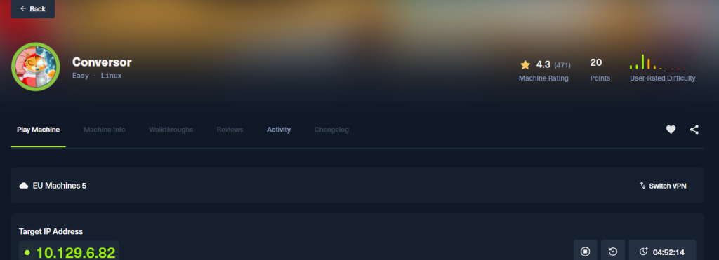 echo “10.129.6.82 conversor.htb” > /etc/hosts
